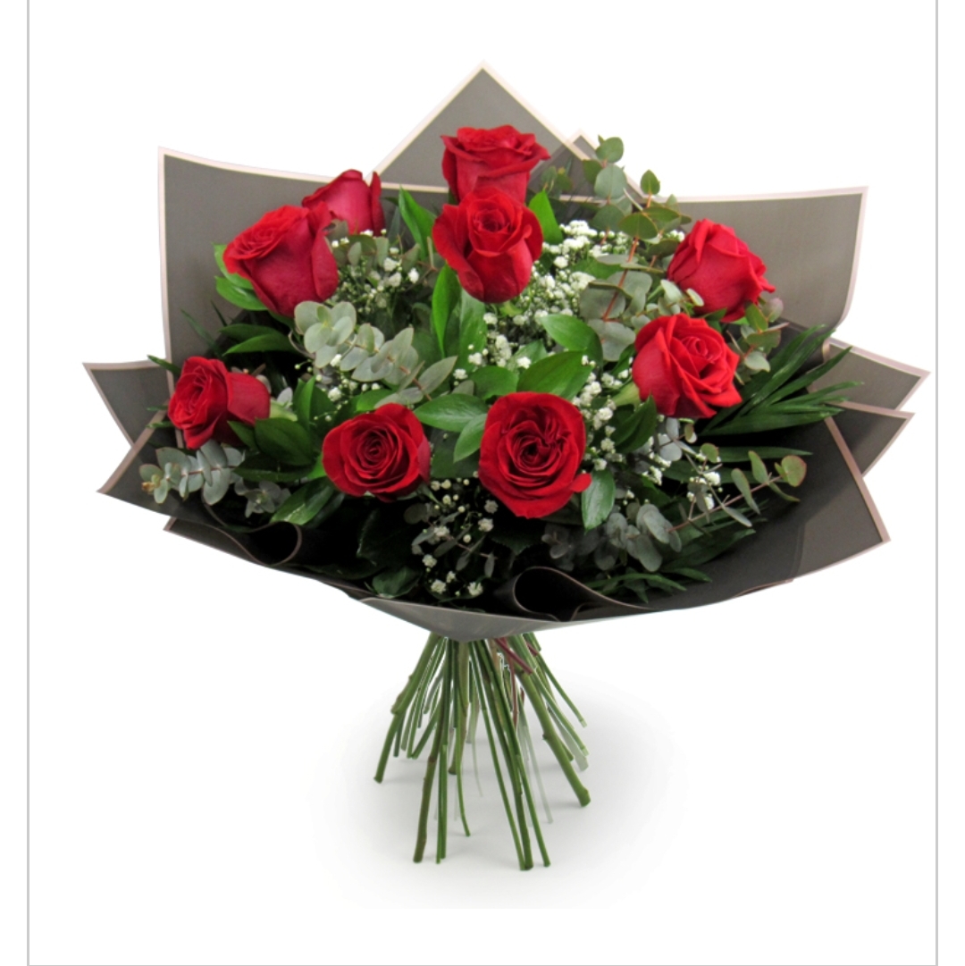 Ramo de 9 rosas acompañada de verdes variados